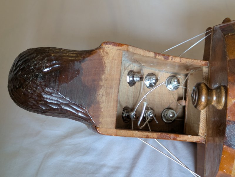 Les cordes sont tendues par des chevilles classiques de violon en bois